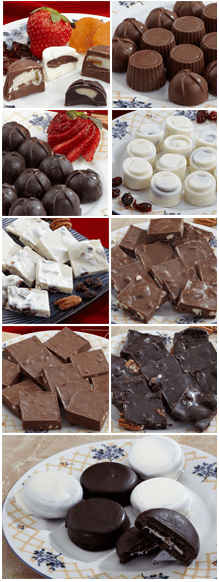 | Fruit & Wine Chocolates: 18 Pieces, Peach 18 Pieces, Strawberry 18 Pieces, CranberryGourmet Chocolate Bark: 24 Pieces Pecan/Raisin